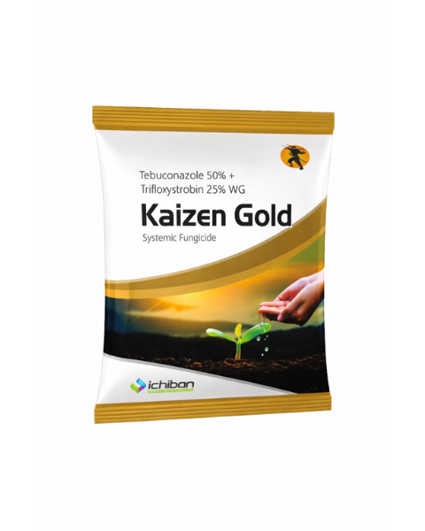 - Kaizen Gold is a new combination systemic broad-spectrum fungicide with protective and curative action which offers not only a disease control but also improves quality and yield of crop. Kaizen Gold provides stress tolerance to crops against biotic and abiotic factors. Kaizen gold rainfast within one hour of spray, quickly gets absorbed through waxy layer of leaf and also improve boot leaf health in Paddy.